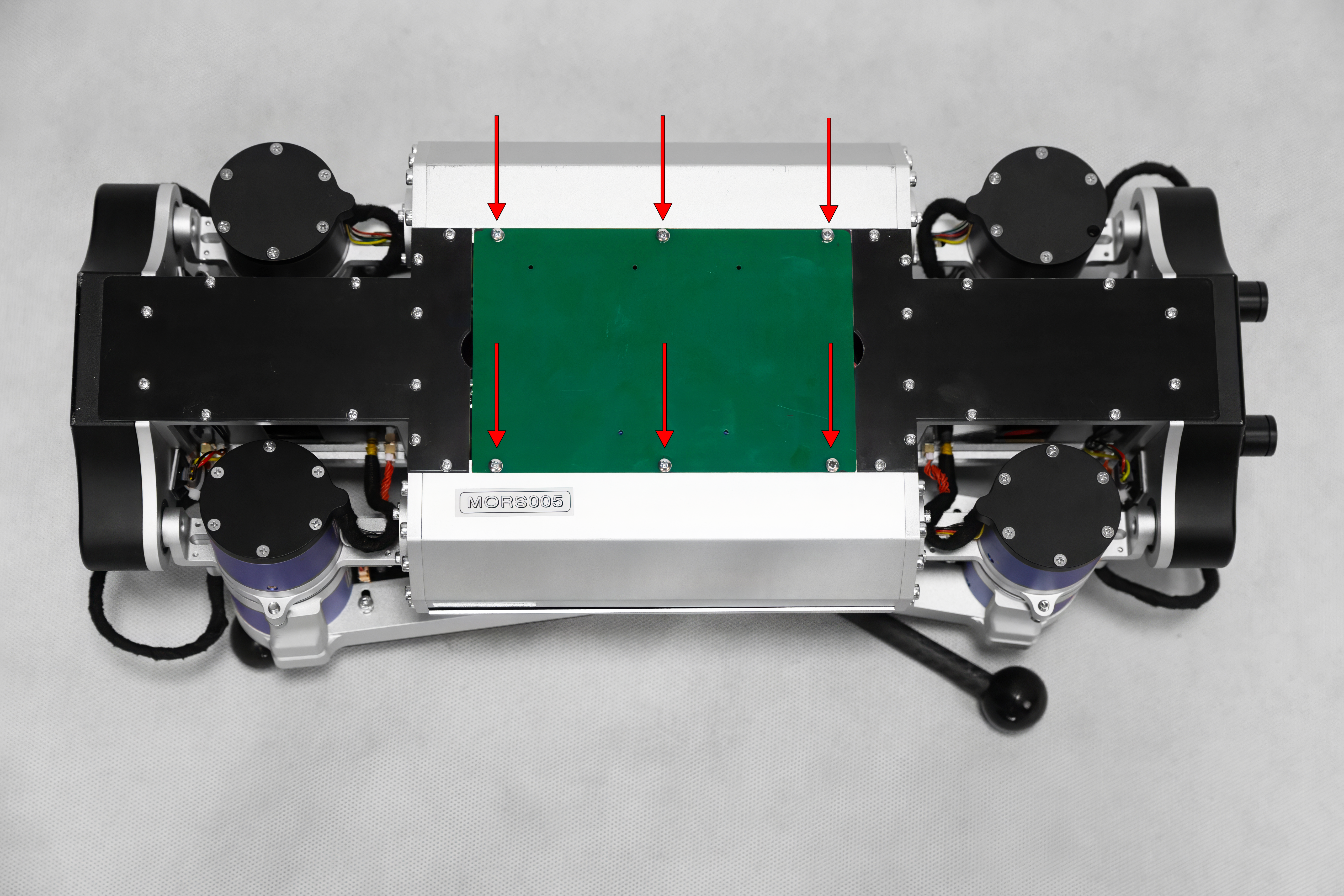 Вставьте батарею в аккумуляторный отсек, аккуратно уложив провода внутри отсека. Прикрутите аккумуляторный блок, используя винты М3х8 из комплекта поставки: