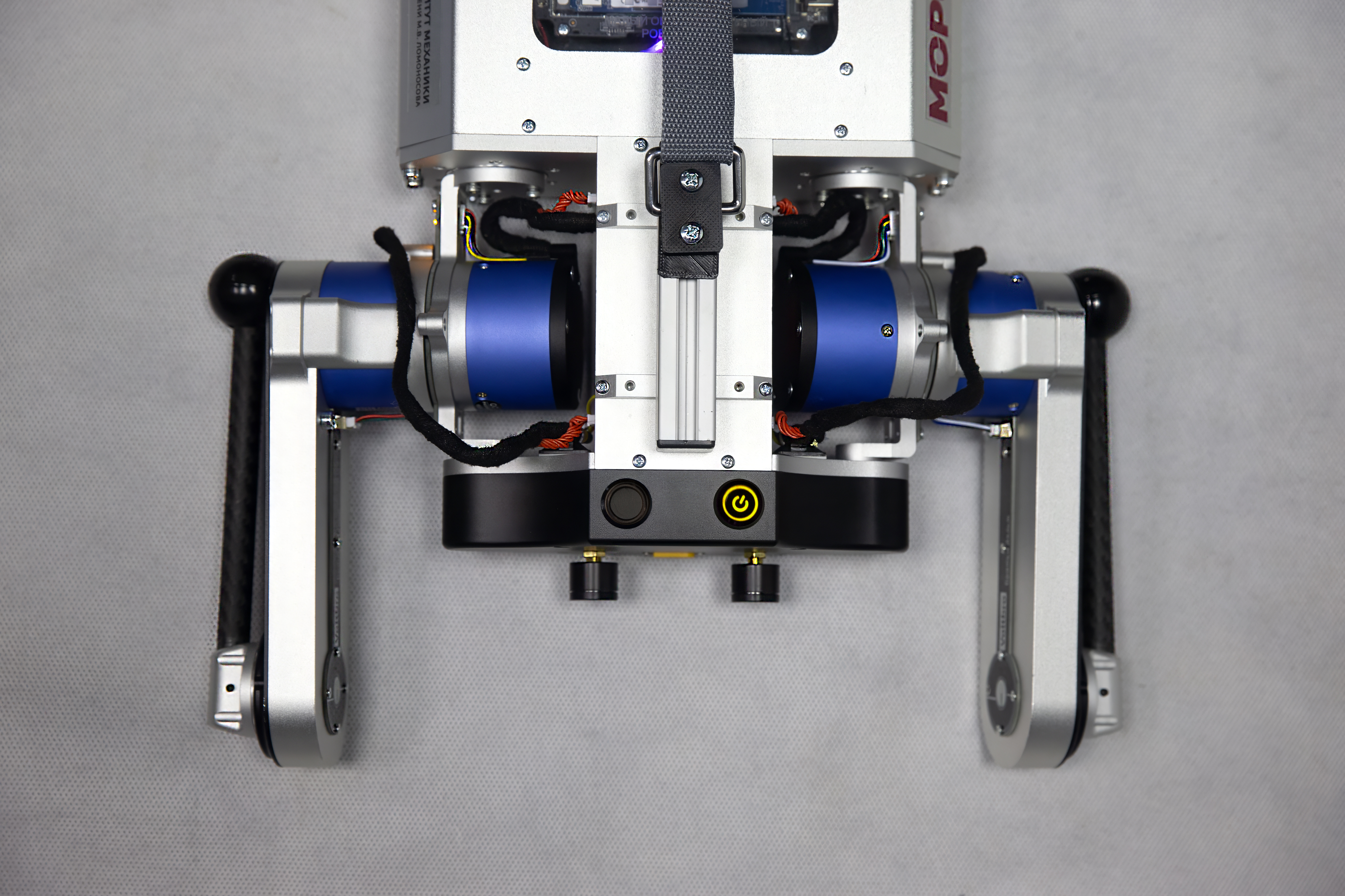 Положите робота на устойчивую поверхность. Расположите ноги, как показано на фотографии: