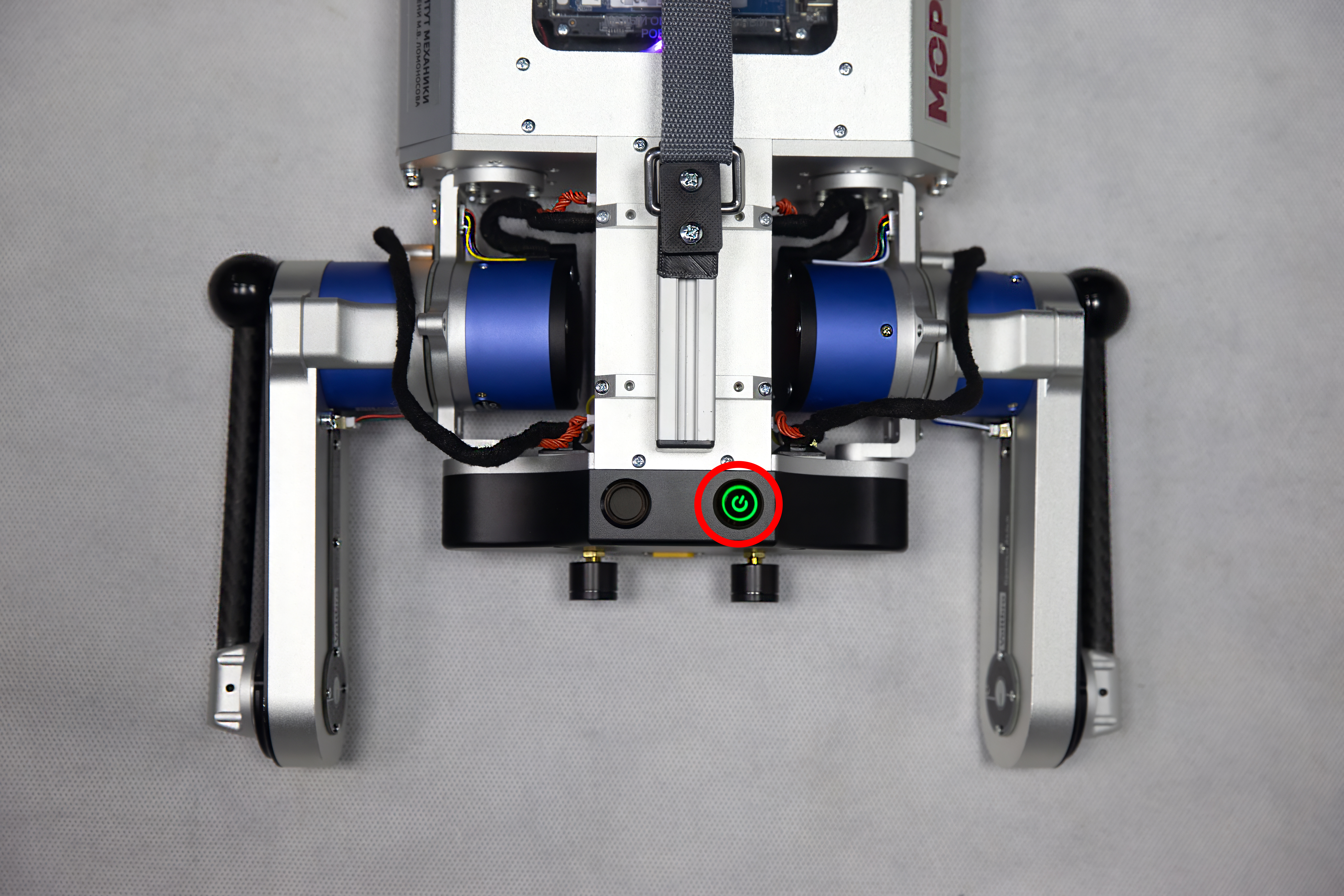 Электромоторы робота имеют высокий момент и способны повредить мягкие ткани организма человека. Запрещается касаться движущихся частей робота при подаче питания на моторы.