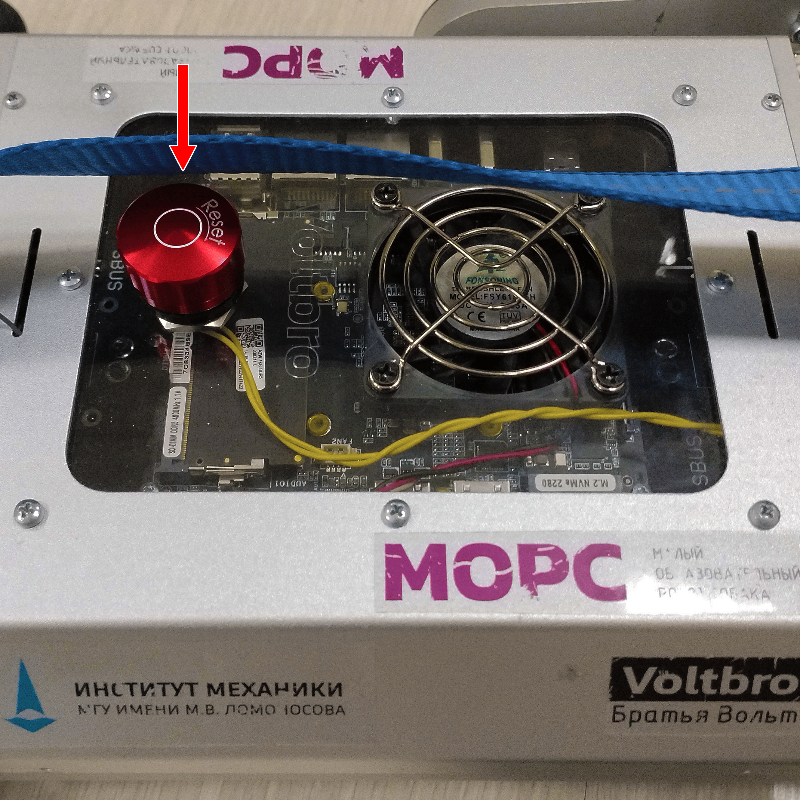 Для экстренной остановки робота необходимо нажать кнопку сброса питания двигателей.