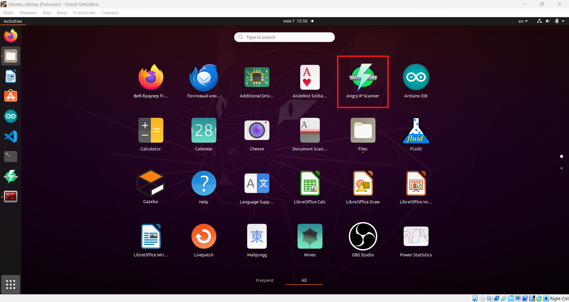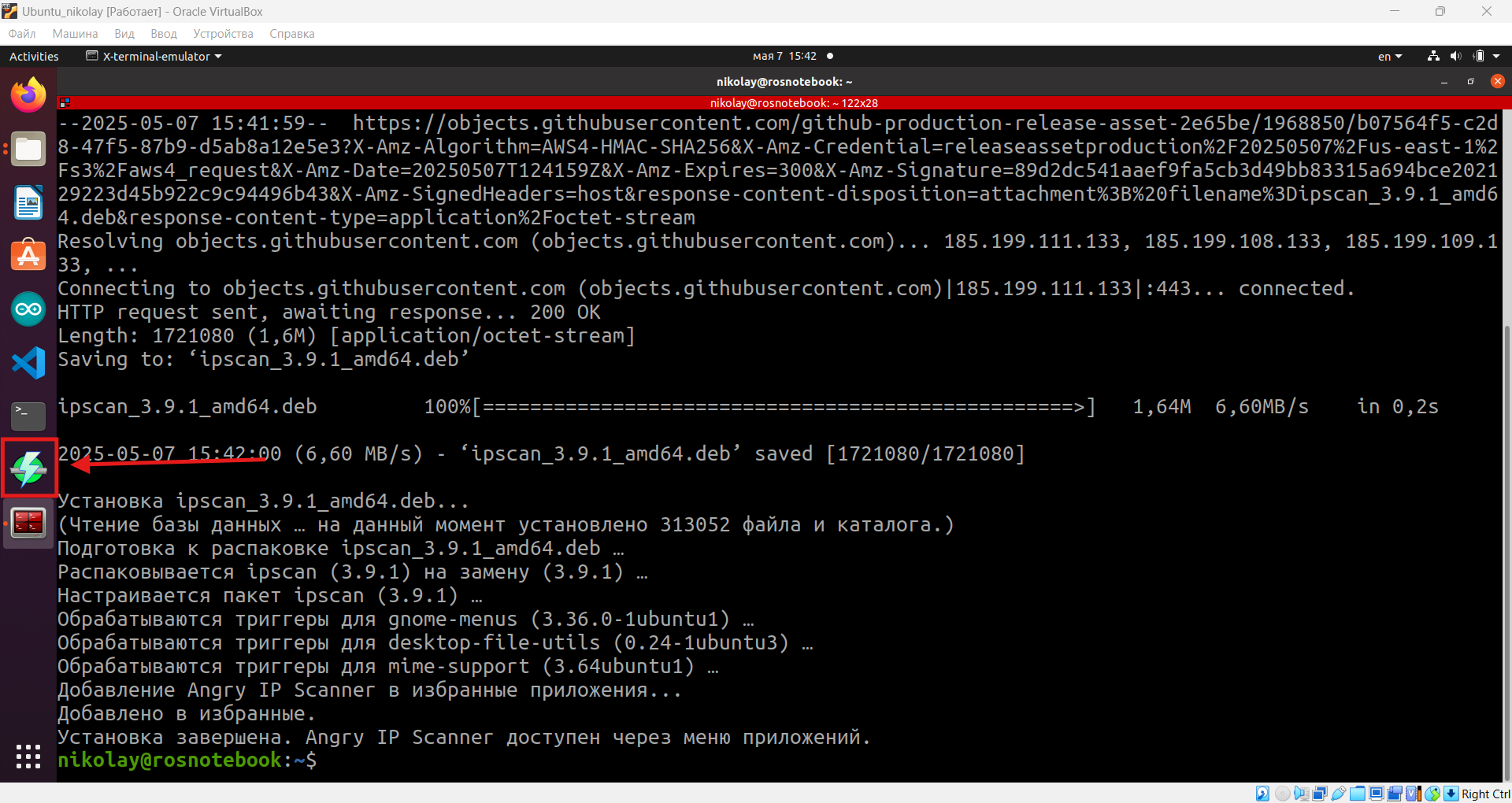 - После выполнения bash-скрипта появится ярлык приложения Angry IP Scanner