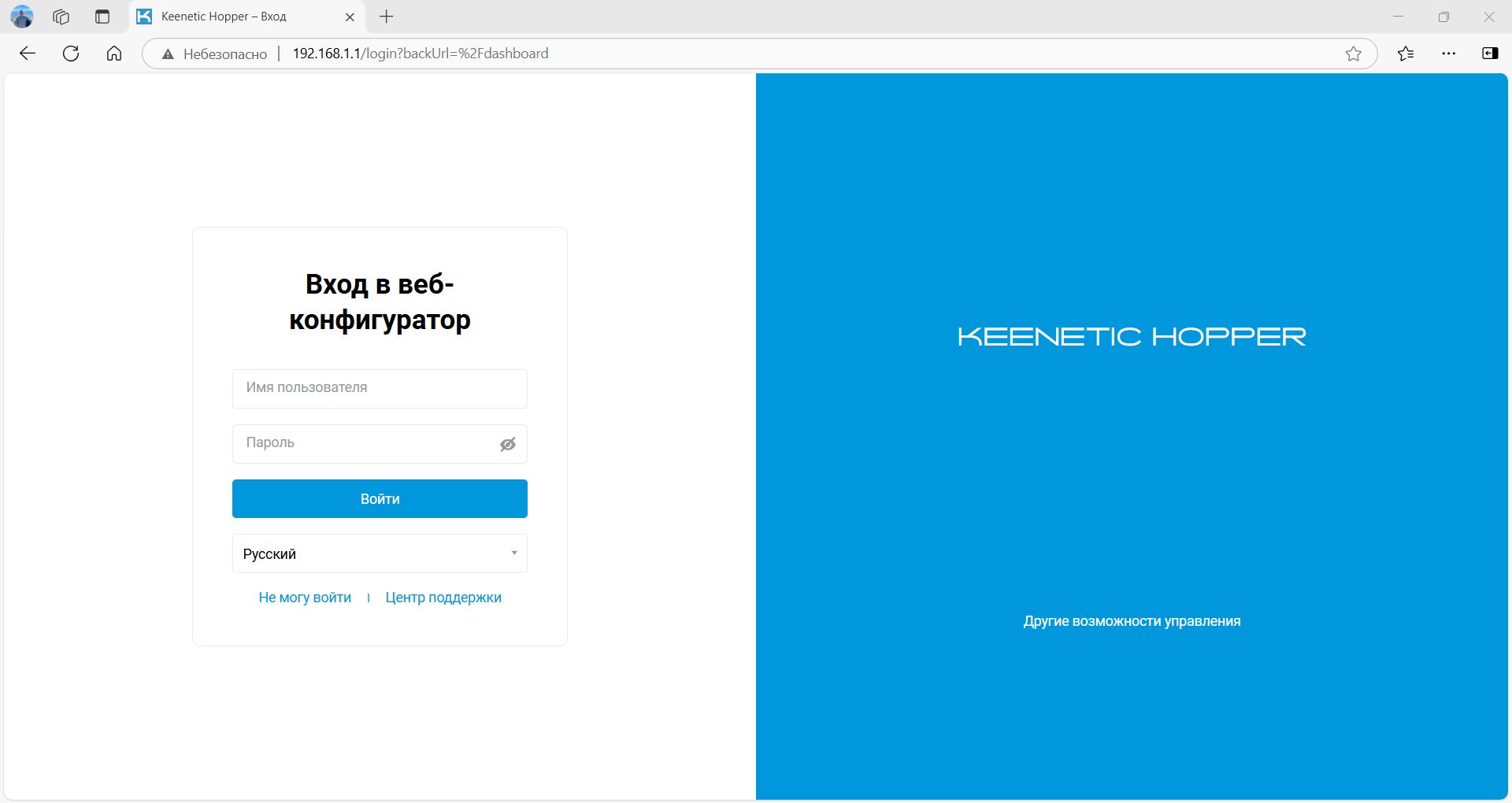 - Заходим на страницу авторизации и вводим логин и пароль с доступом к веб-интерфейсу